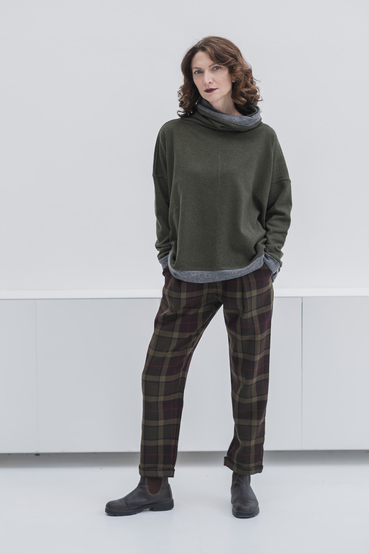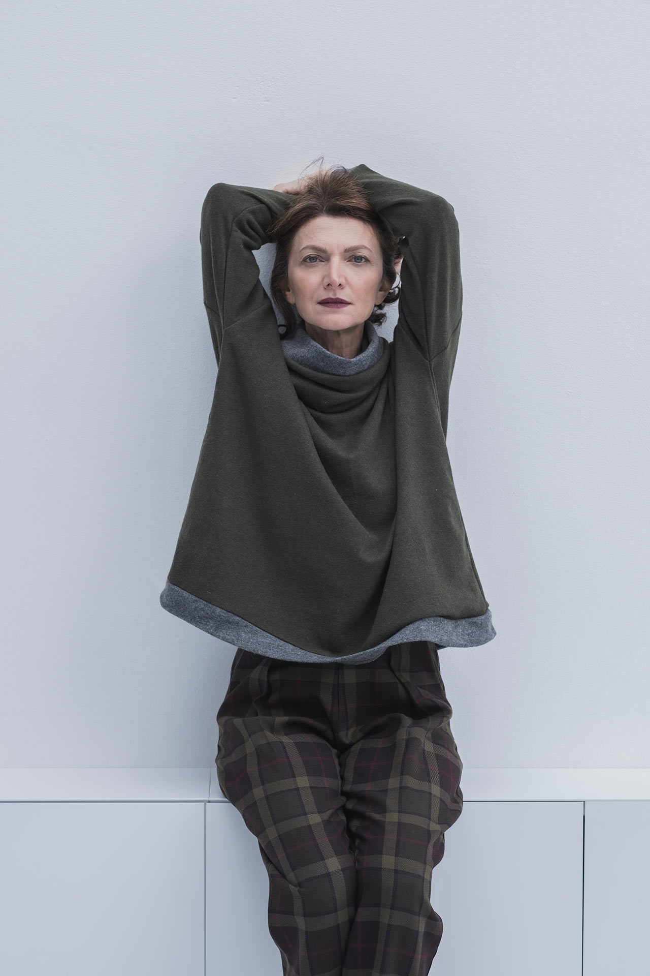 La Maglia Double nasce dal desiderio di creare un capo semplice, pensato per chi cerca comfort senza rinunciare alla qualità. Il design è stato studiato per garantire una vestibilità comoda ma al tempo stesso femminile. Il collo a tubo morbido è pensato per incorniciare il viso in modo delicato, mentre il taglio delle maniche, aderenti ma con spalla scesa, assicura comfort e praticità. Realizzata in 100% lana, è disponibile in due varianti: verde con bordi grigi o grigia con bordi verdi.