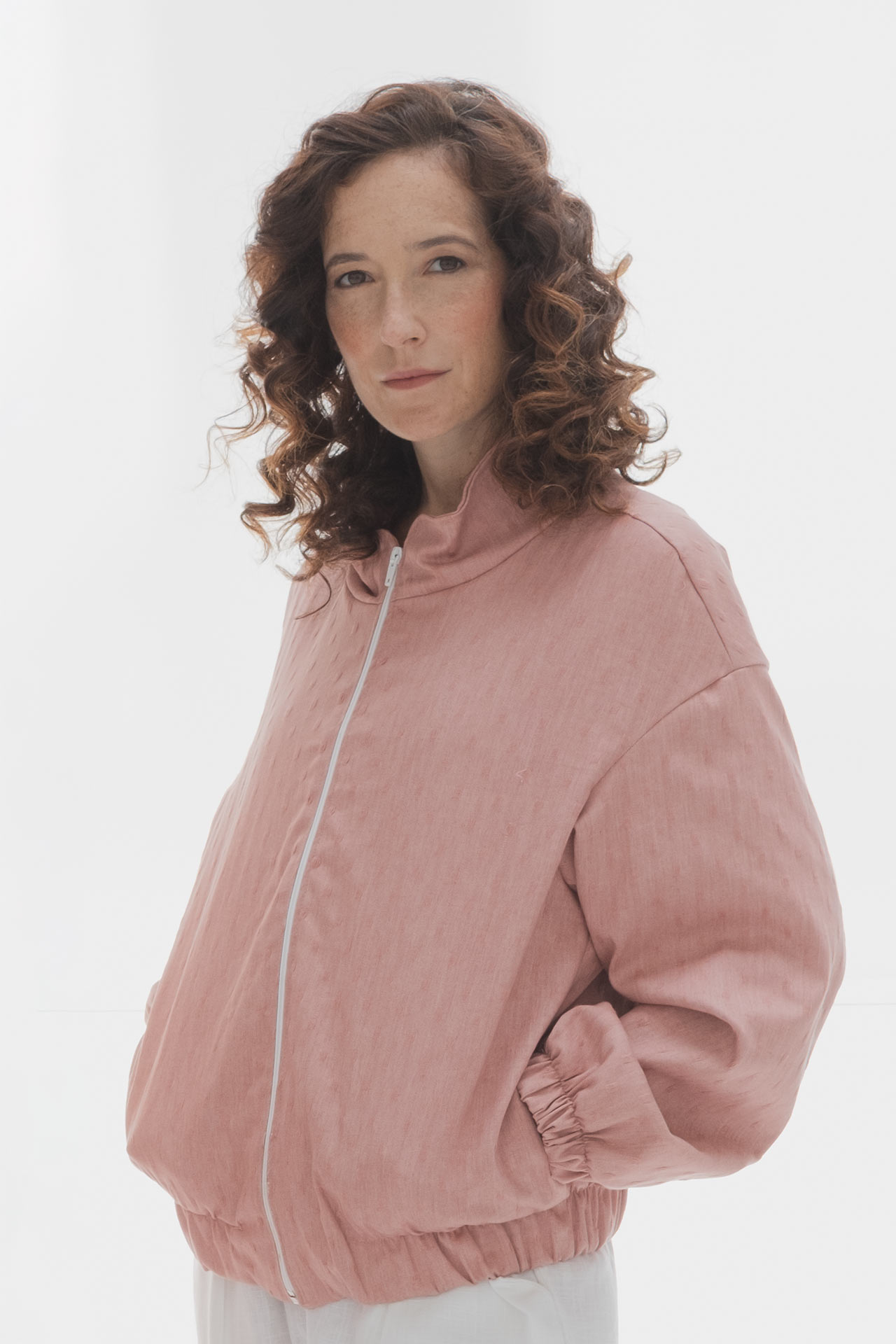 Il Bomber di Nicoletta Fasani è un capo che unisce modernità, eleganza e praticità. Disponibile in cotone melange rosa 100% con trama leggermente in rilievo, ha il taglio di un giubbotto con collo alla coreana e offre una vestibilità morbida e fluida. La giacca, priva di bottoni e dotata di cerniera, presenta una lunghezza al fianco e tasche laterali ampie che garantiscono comfort e una silhouette valorizzata con discrezione. Il design pulito e lineare la rende ideale sia per un look da ufficio che per un’occasione speciale, facilmente abbinabile a pantaloni eleganti o jeans.