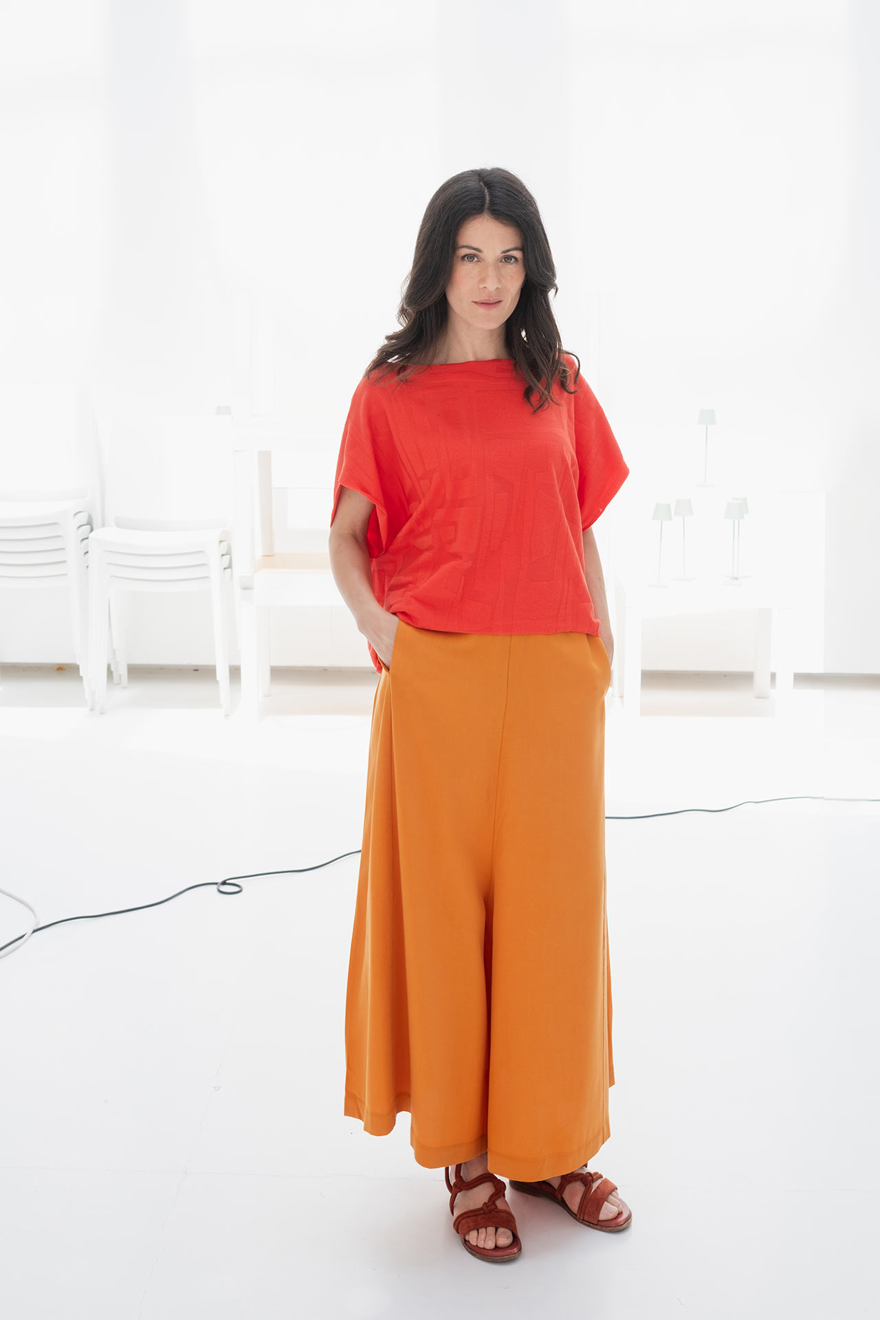 La creazione di questa gonna pantalone con elastico in vita è il risultato di un'accurata ricerca del perfetto equilibrio tra moda e comfort. Ispirato ai classici pantaloni a palazzo, il design è stato reinterpretato in chiave moderna per soddisfare le esigenze delle donne di oggi, che desiderano un capo versatile, elegante e confortevole. L’elastico in vita è stato scelto per aggiungere praticità senza rinunciare all’eleganza, permettendo al capo di adattarsi a diversi tipi di corpo senza compromessi.
