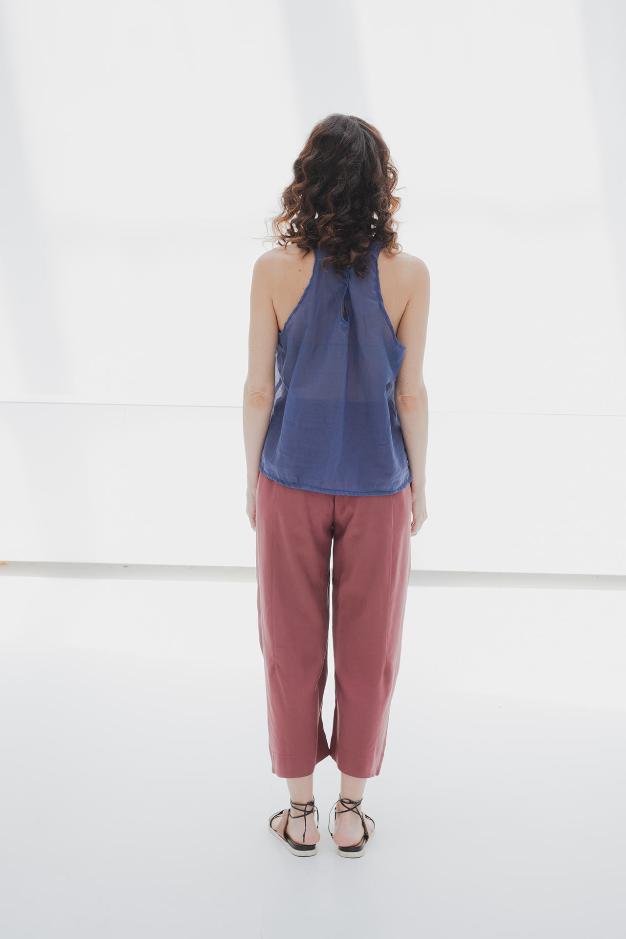 La top incrocio in mussola di cotone è un capo unico che unisce eleganza e comfort. Realizzato in pregiata mussola di cotone, offre una vestibilità ampia e una silhouette che gioca con le forme, creando un effetto visivo intrigante. Il design risalta le spalle, creando un look moderno e raffinato. Il collo presenta un incrocio che dona una sensazione di calore e comfort, aggiungendo un tocco di eleganza senza tempo al capo. Il modello si adatta facilmente a diverse corporature, grazie alla sua forma leggermente svasata e all'ampia vestibilità.