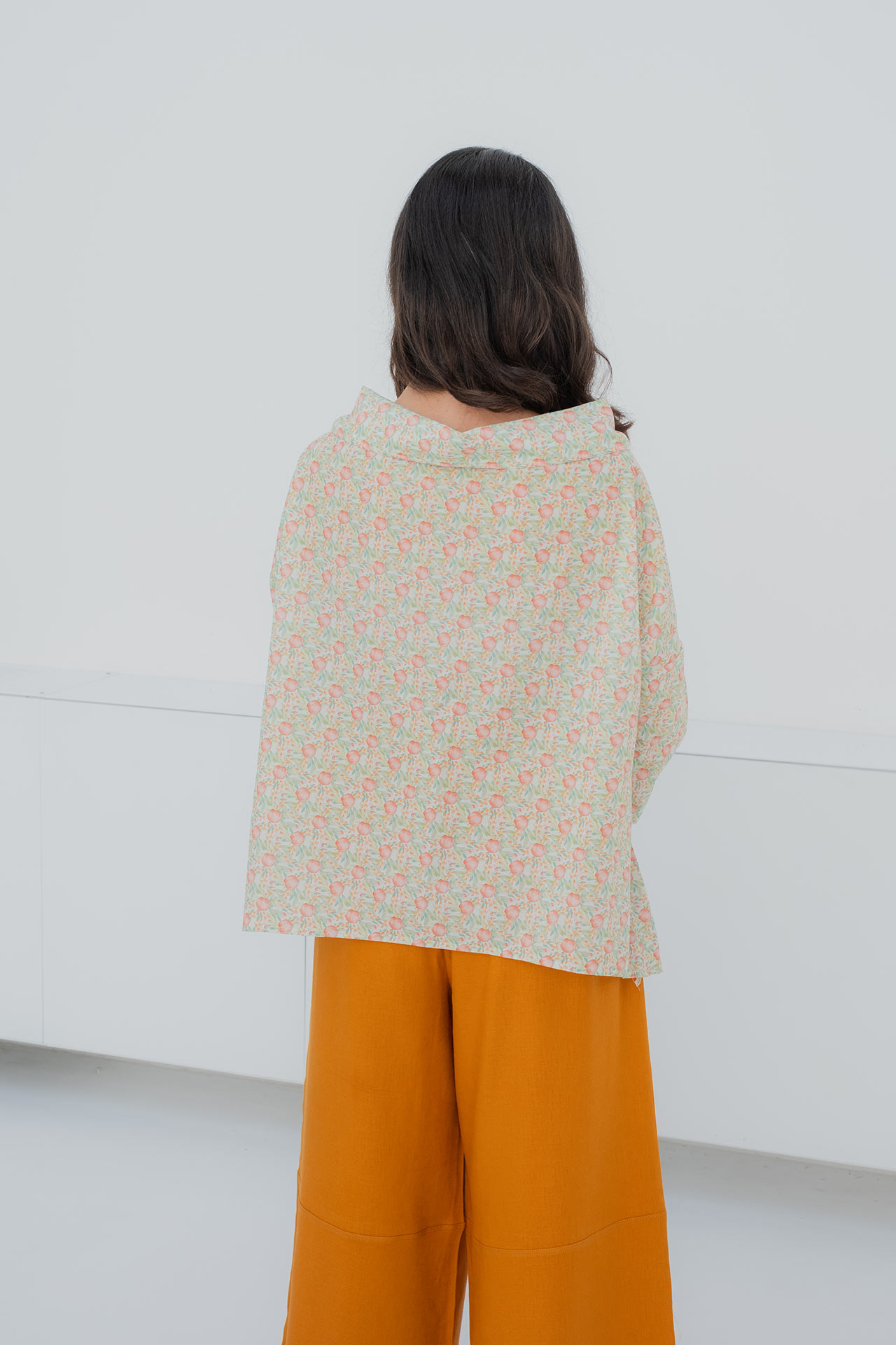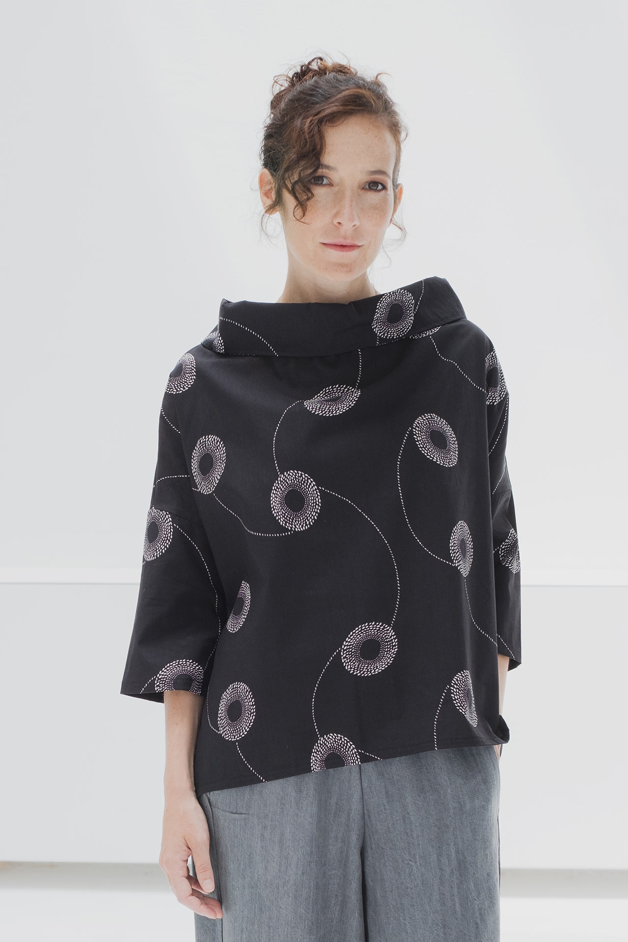 La camicia Palmaria asimmetrica e reversibile in cotone a FANTASIA di Nicoletta Fasani è un capo d'abbigliamento che unisce eleganza e raffinatezza. Realizzata al 100% cotone, questa camicia offre un comfort eccezionale e una vestibilità impeccabile. La forma è a trapezio più lunga dietro che davanti, le maniche ampie conferiscono un tocco di originalità e modernità. Un elemento distintivo di questa camicia è la sua versatilità: lo scollo a V può essere portato davanti, creando un look sensuale ed elegante, oppure dietro sulla schiena, per un effetto più sofisticato e inaspettato. Perfetta per essere indossata sia dentro i pantaloni che sopra una gonna, la camicia si presta a diverse occasioni, da eventi speciali a look sofisticati per il quotidiano.