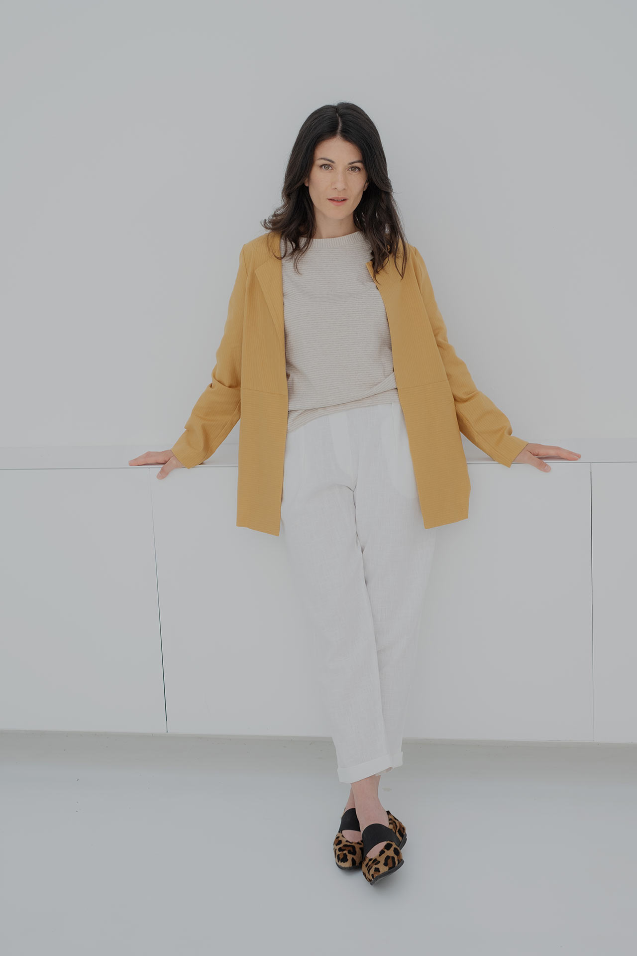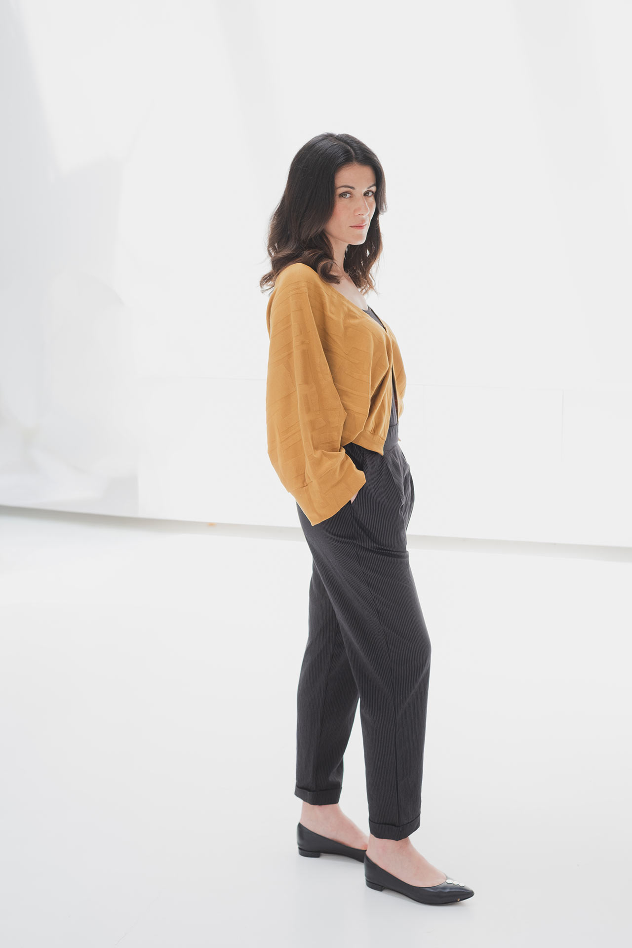 Il concetto di un pantalone con pinces e taglio maschile è stato ispirato dai classici pantaloni maschili, reinterpretati però in una versione più femminile e versatile. La presenza dell'elastico in vita e delle tasche laterali nasce dalla volontà di creare un pantalone che fosse comodo per ogni occasione, che potesse essere facilmente indossato durante una giornata di smart working o per una passeggiata nel tempo libero. Il tessuto, scelto per la sua morbidezza e traspirabilità, è pensato per garantire il massimo comfort durante tutto il giorno. Il Pantalone Urban è, infatti, una sorta di "tuta elegante", che mantiene la praticità senza sacrificare lo stile. La sua realizzazione in lino, lino e cotone, cotone e elastan oppure modal e polyester lo rende perfetto per essere indossato in ogni stagione, mantenendo un look sofisticato ma adatto alla vita di tutti i giorni.